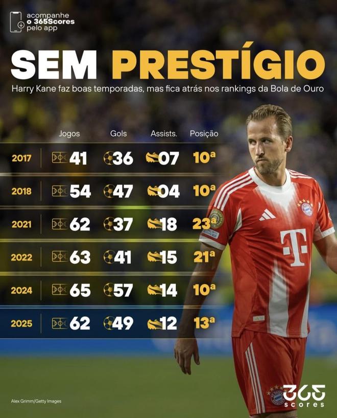 你以为进球越多,金球奖排名就越高吗?看看凯恩就知道未必。六个赛季347场267球70助,火力拉满,金球排名却常徘徊前十边缘。症结不在进球,而在缺少一座“能拍桌子”的冠军和几场半决赛、决赛的决定性时刻。接下来就把这份数据摊开,看看他到底差在哪儿。
